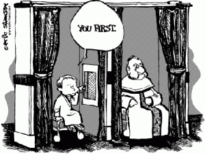 A reading on one of my favorite prayer sites says, “In Confession we try to see our meanness as others might see it. … ‘That is what I did, it was bad, and I am sorry.’ In all our religious life, there is no act as personal as this. The other sacraments can easily turn into empty rituals. Confession, taken seriously, makes the most intense personal demands on us; and brings a comfort we can feel.”