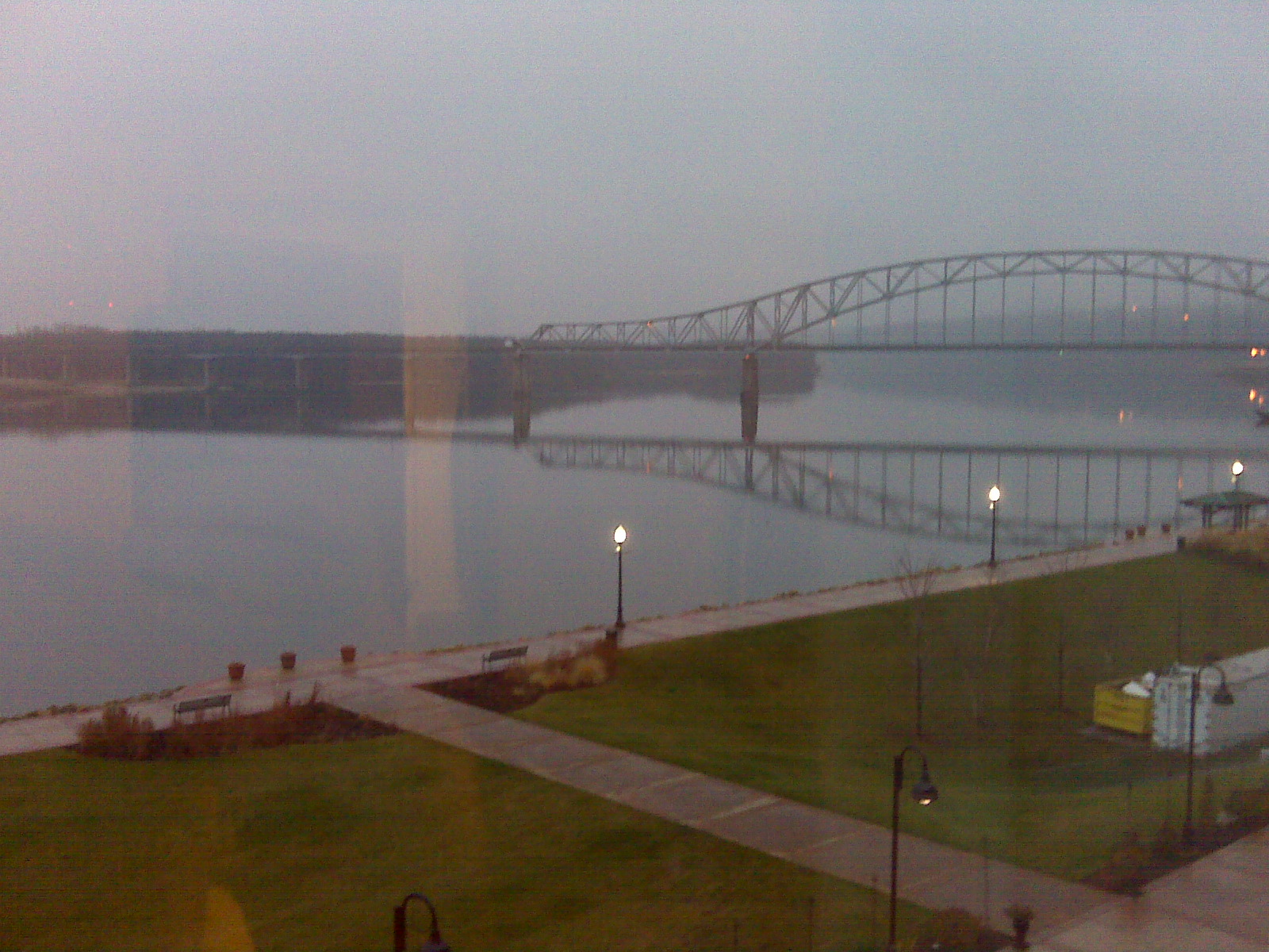The old mighty Mississippi never stops. I took this on my Blackberry from my 5th floor room at the Grand Harbor Resort in Dubuque, Iowa, where I am attending a Vineyard meeting.