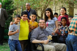 | The Rev. Dr. Andrew White, Vicar of St. Georges Anglican Church in Baghdad, Iraq, sitting with some of the children from his parish |