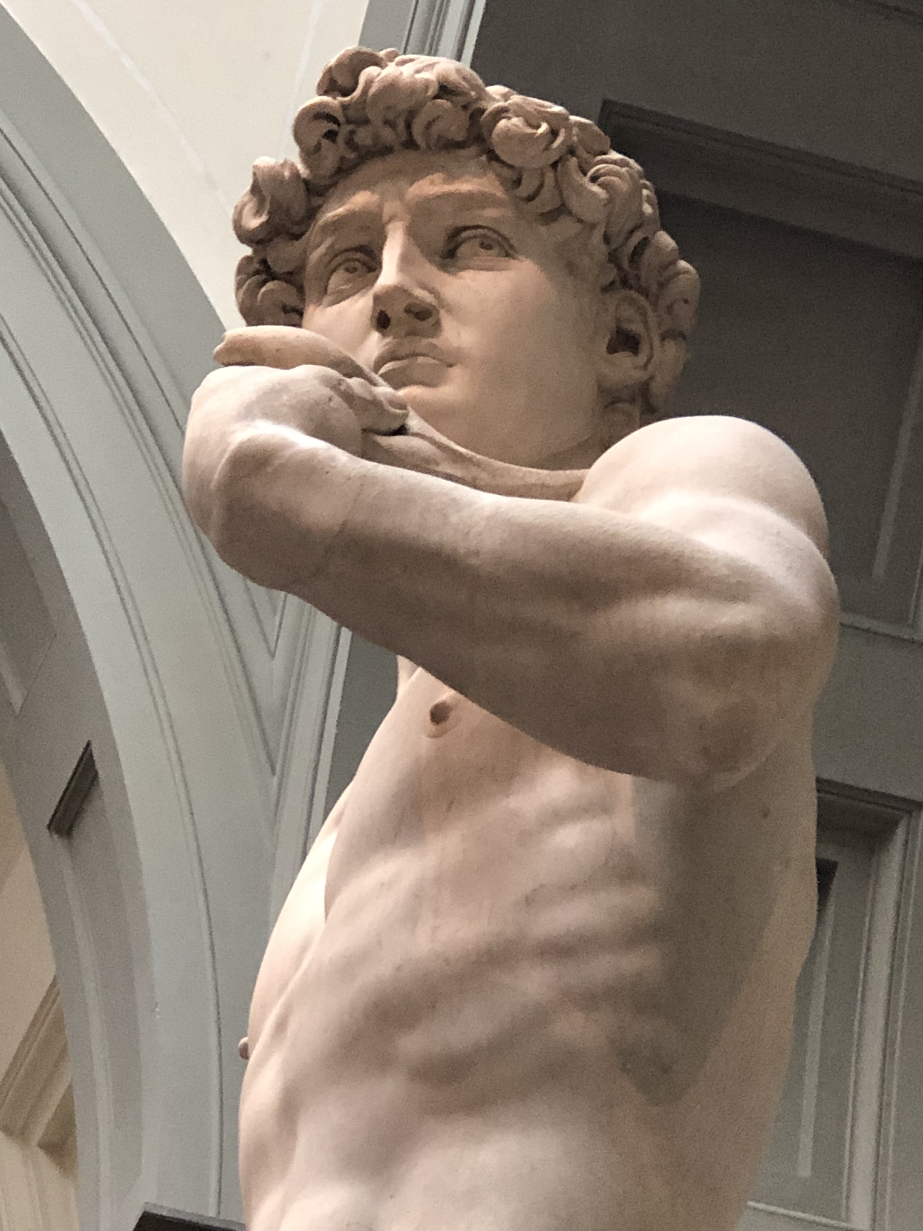 The days we spent in Florence, Italy, we were dazzled by the art, especially the sculptures of Michelangelo. For me, none matched his 14-feet tall “David,” which Michelangelo carved from solid marble. This is the masterpiece that emerged.